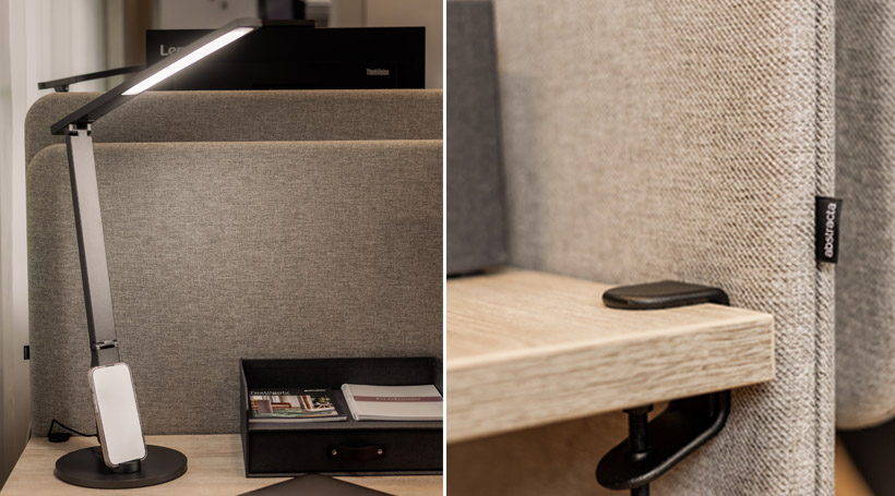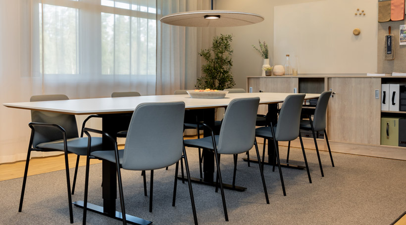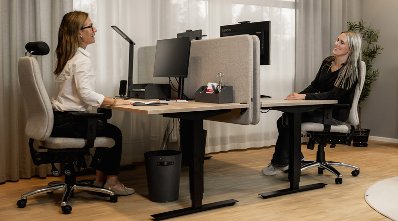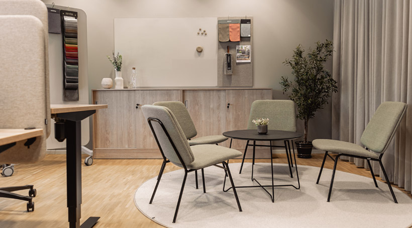 Akustikløsninger: Lyddæmpende materialer, tekstiler og skærme skaber tydelige, men fleksible grænser og giver et behageligt arbejdsmiljø.