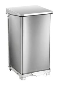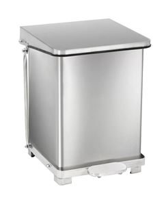 Affaldsspand Manuel, rustfrit stål, volumen 27 l, HxBxD 440 x 380 x 365 mm. Korpus og låg af rustfrit stål.