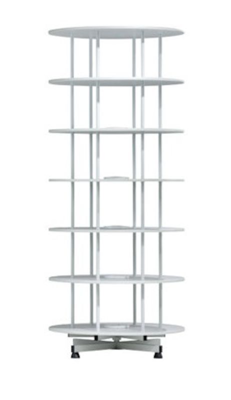 Ringbindskarrusel, Ø 800 mm, 6 hylder, lysegrå. Hele hylden kan drejes Til opbevaring af ca. 80% flere mapper i forhold til lignende reoler Let, støjfri bevægelse Ubesværet drejning med kuglelejer. Stabil stålkonstruktion, pulverlakeret i lysegrå (RAL 7035). Hylder af coatede spånplader. En kant forhindrer, at mapperne rutsjer ud. En dækplade beskytter mapperne mod støv. Lastkapacitet pr. hylde 70 kg. Samlet belastning på 300 kg. Montering af hjul kun tilladt på mappestativer med maks. 4 etager.