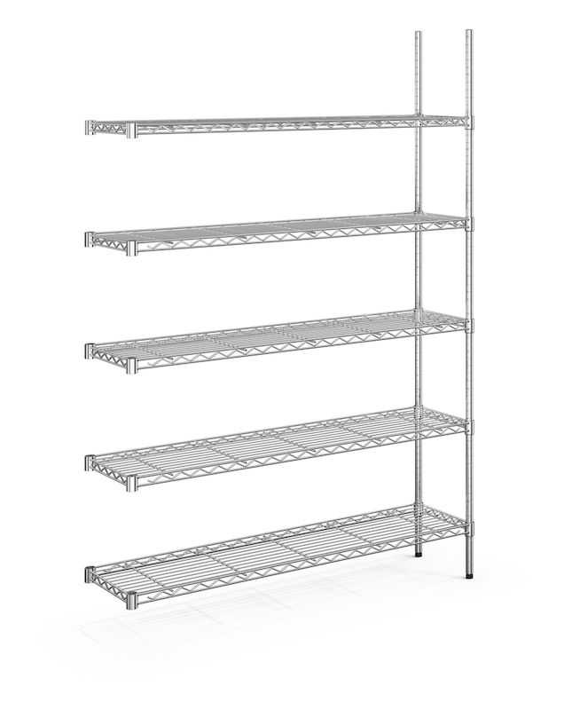 Gitterreol Joel, belastning pr. hylde: 100 kg, BxD 1220 x 360 mm, tilbygningssektion, højde 1880 mm, 5 hylder.