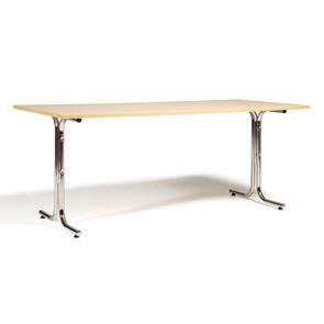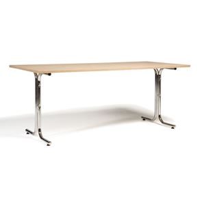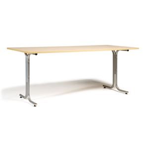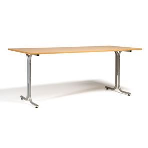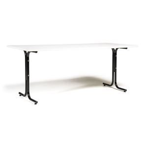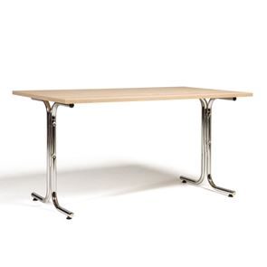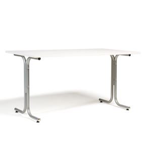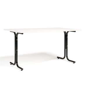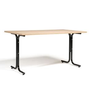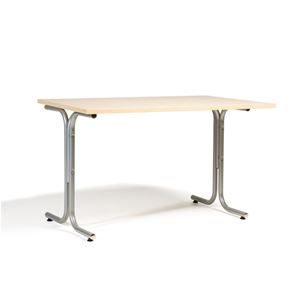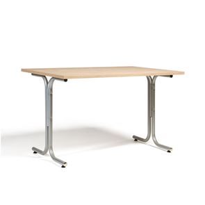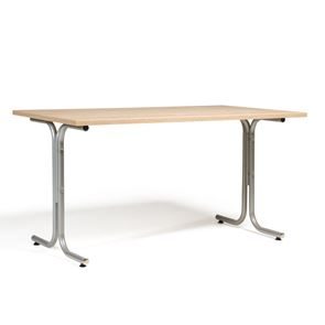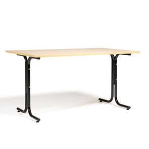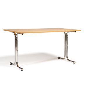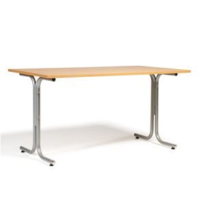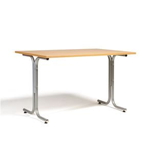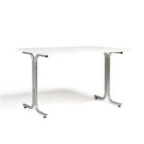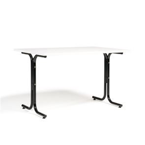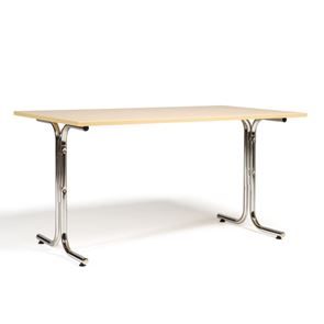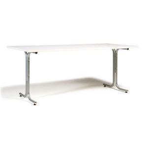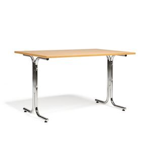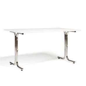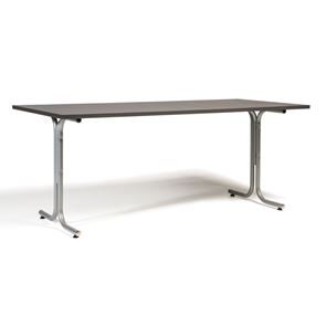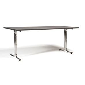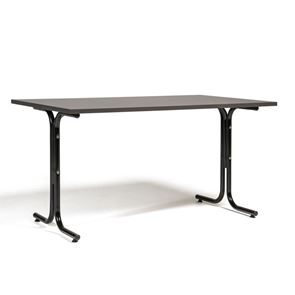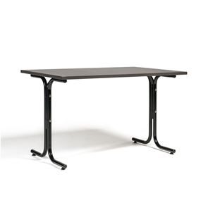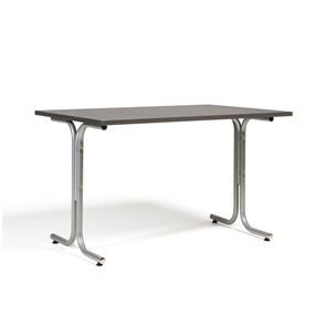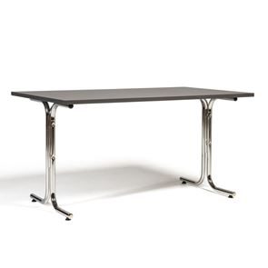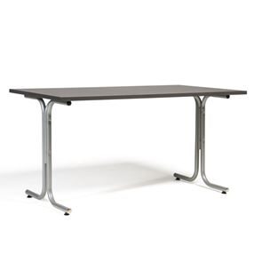 Kantinebord Vicky Square, LxB 1400x800 mm mørkegrå/krom. Kantinebord Vicky, Funktionelle, rektangulære caféborde og kantineborde i flere størrelser fra 1200-1800 mm. Med indstillelige fødder så bordet kan stå på stabilt også på ujævne flader. Bordpladen er i laminat som er en holdbar overflade der tåler daglig brug. Stellet findes i krom, sortlakeret eller sølvlakeret.