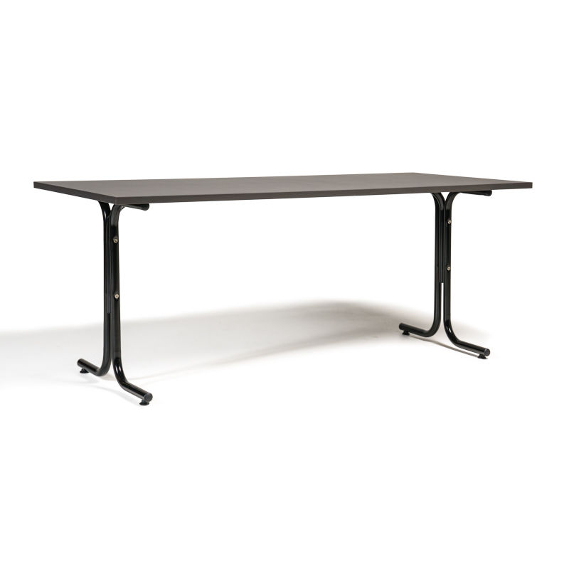 Kantinebord Vicky Square, LxB 1800x800 mm mørkegrå/sort. Kantinebord Vicky, Funktionelle, rektangulære caféborde og kantineborde i flere størrelser fra 1200-1800 mm. Med indstillelige fødder så bordet kan stå på stabilt også på ujævne flader. Bordpladen er i laminat som er en holdbar overflade der tåler daglig brug. Stellet findes i krom, sortlakeret eller sølvlakeret.