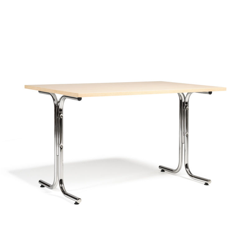 Kantinebord Vicky Square, LxB 1200x800 mm, birk/krom. Kantinebord Vicky, Funktionelle, rektangulære caféborde og kantineborde i flere størrelser fra 1200-1800 mm. Med indstillelige fødder så bordet kan stå på stabilt også på ujævne flader. Bordpladen er i laminat som er en holdbar overflade der tåler daglig brug. Stellet findes i krom, sortlakeret eller sølvlakeret.