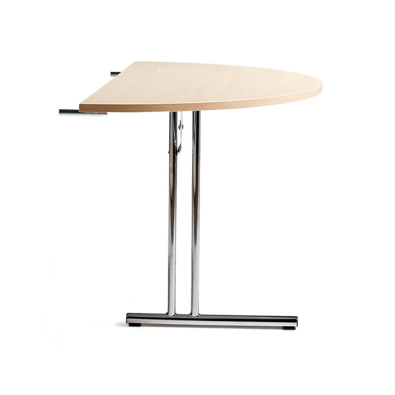 Konferencebord Modul, endeplade, 1/2 diameter 1200 mm, birk/krom. Sammenklappelig. Fleksible konferenceborde med ubegrænsede variationsmuligheder. Bordene kan klappes sammen og er lette at folde ud.