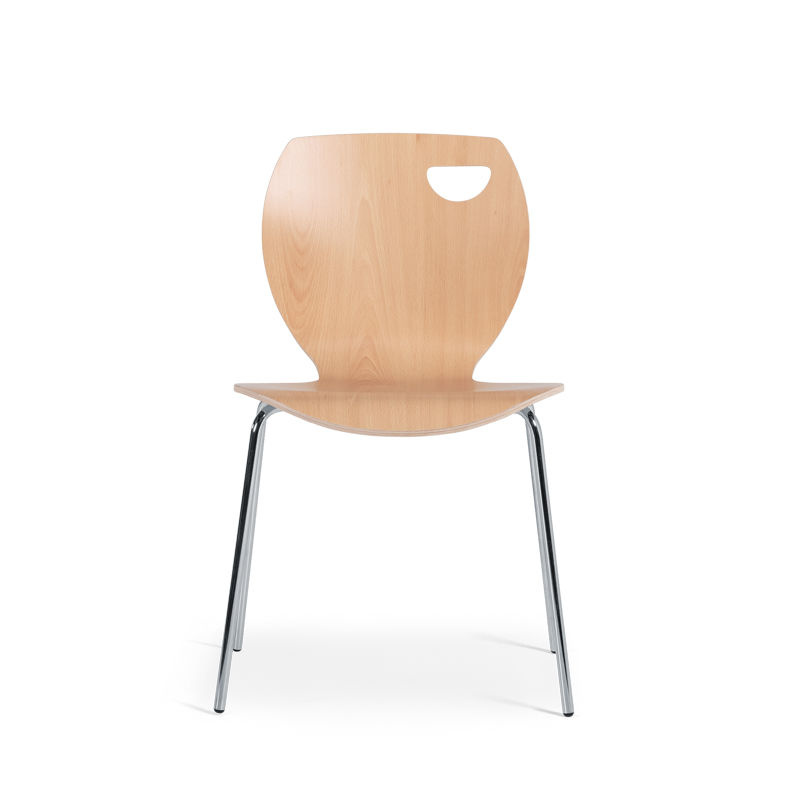 Skalstol Laura, stabelbar, 4-pk, bøg/krom. Stabelbare skalstole Laura, til kantinen eller konferencerummet. Stabelstole med formpresset sæde/ryg ud i ét. Konferencestolene / kantinestolene har en overflade af hård og slidstærk højtrykslaminat og understellet af forkromede stålrør. Greb udskåret i ryggen gør det lettere at flytte og arrangere skalstolene. Skalstolene leveres samlede. B 500. D 460 mm. Siddehøjde 450 mm. Total højde 830 mm. Sælges i 4-pak. Leveres umonterede.