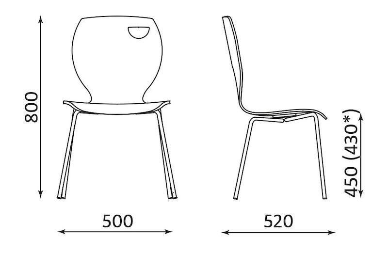 - Materiale på sæde og ryglæn: højtrykslaminatplade (HPL)