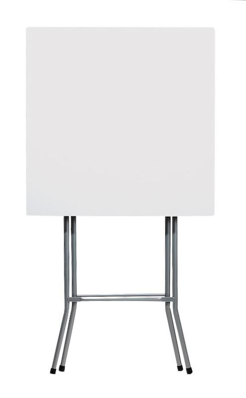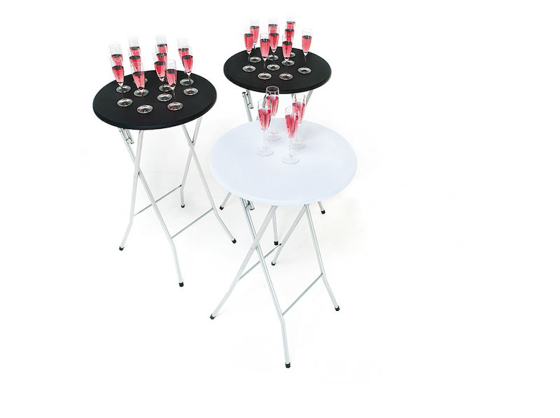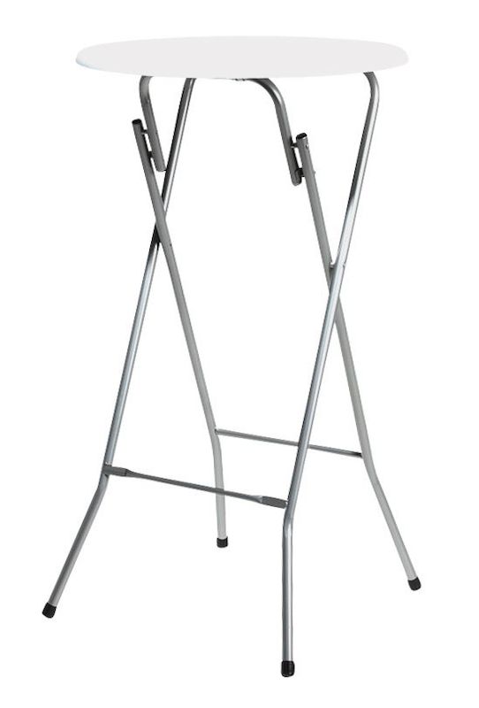 Sammenklappeligt, stabilt ståbord. Let at klappe ud og klappe sammen. Lakeret stålrørsunderstel.