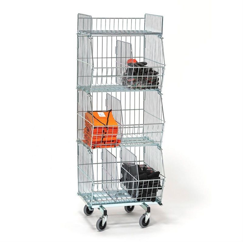 Stabelkurvesæt B 900 mm bestående af 3 stabelkurve (HxD 450 x 580 mm), 3 delere, 1 topkurv (HxD 150x480 mm) og en vogn.