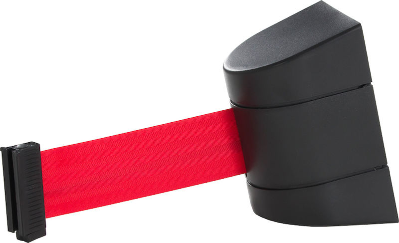 Afspærringskassette med 5,0 m bånd. Sort med rødt bånd. Flot og effektiv vægkassette med udtrækkeligt bånd til permanent afspærring. Praktisk til fx restauranter, beværtninger og andre steder, hvor der opstår behov for midlertidige afspærringer.