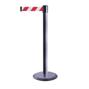 Afspærring til både inde og ude.De udtrækkelige nylonbånd fås i blå, rød, sort og gul/sort.3,65 m bånd. Vægt: 12 kg. Farve: sort.