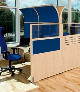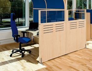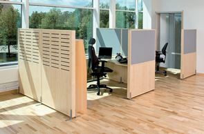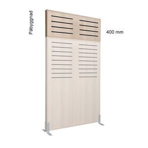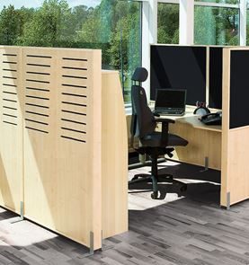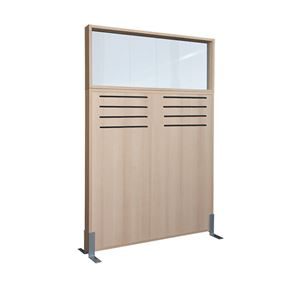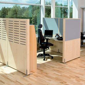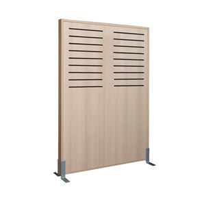 Silence med stof kan også bruges som opslagstavle. Stoffet fås i lysegrå. De forskellige træsorter, der kan vælges til skærmen, er birk eller hvid laminat.