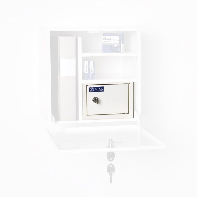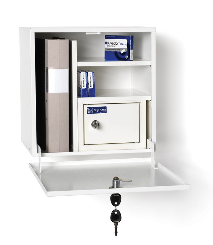 Aflåseligt fag, til Medicinskab, HxBxD 150 x 200 x 150 mm. Aflåseligt inkl. 2 nøgler. Placeres i bunden af medicinskabet. Nederste hylde placeres så oven på værdirummet. Er forberedt til montering på væg. Monteringssæt/skruer medfølger ikke.