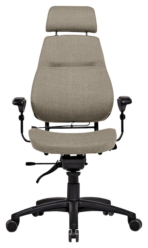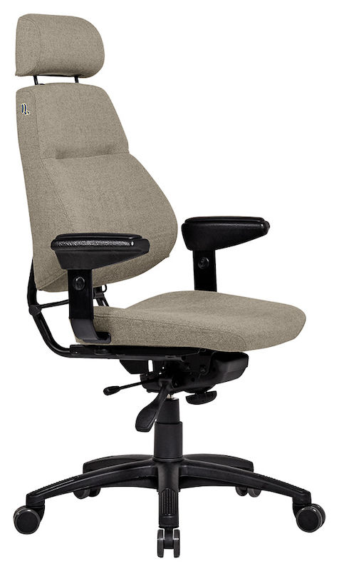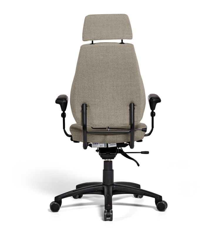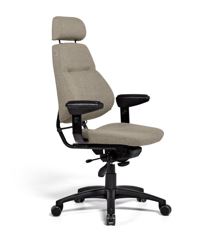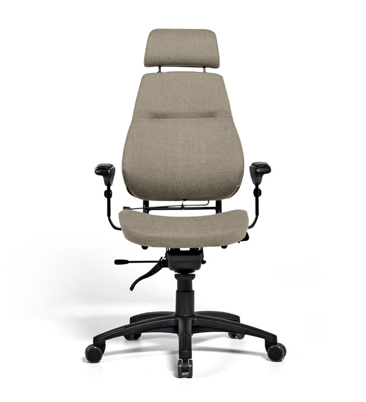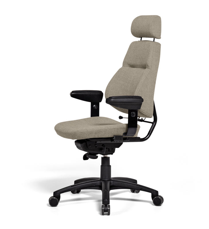 Kontorstol Sverigestolen inkl. armlæn og nakkestøtte, klassikeren, rød. Komplet stol med vipbar nakkestøtte og justerbare armlæn. Ryggen kan vinkles, og sædet kan justeres 50 mm i dybden. Sædeflader beklædt med uldstof. Leveres med hjul til hårde gulve.