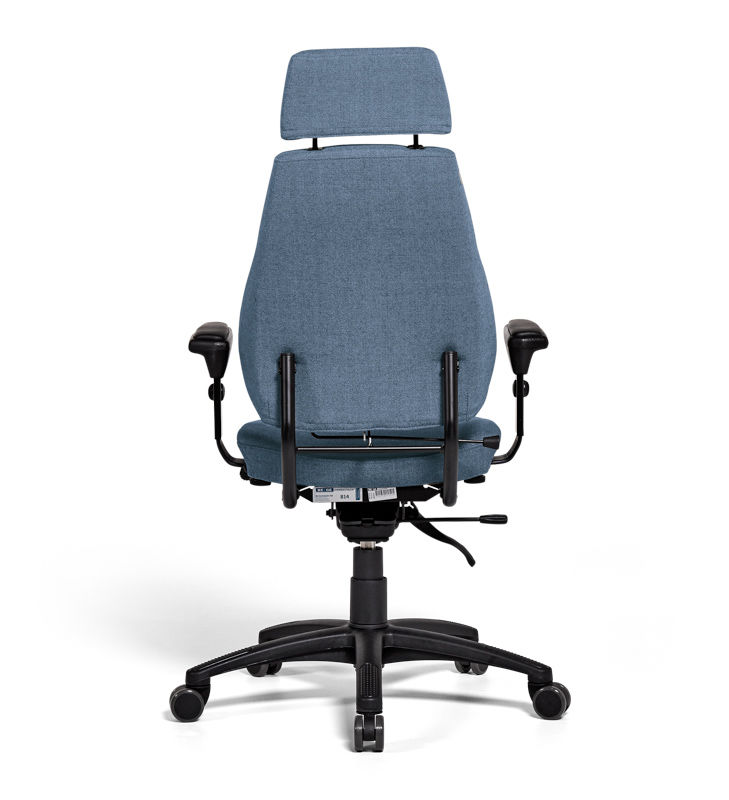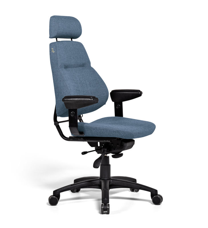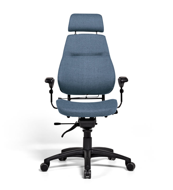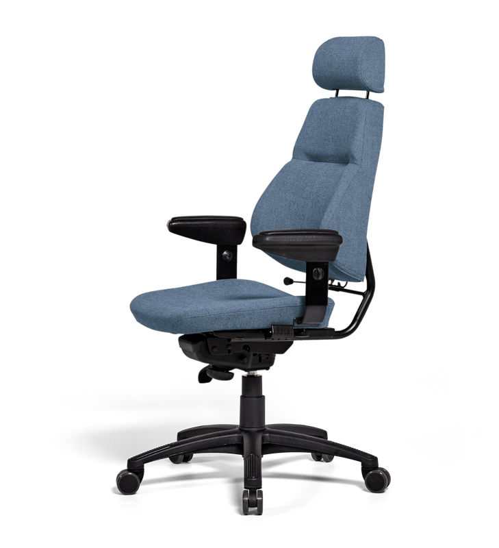 Kontorstol Sverigestolen inkl. armlæn og nakkestøtte, klassikeren, rød. Komplet stol med vipbar nakkestøtte og justerbare armlæn. Ryggen kan vinkles, og sædet kan justeres 50 mm i dybden. Sædeflader beklædt med uldstof. Leveres med hjul til hårde gulve.