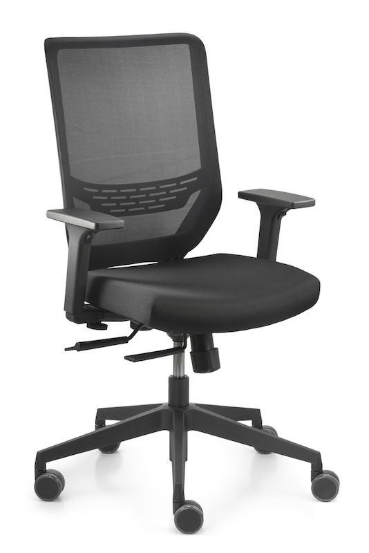 Som tilbehør fås sædehynderne endvidere i mange farver. Det ergonomiske ryglæn har en lændestøtte, og armlænene har bløde PU-indlæg. Det forskydelige sæde kan justeres med 5 cm, hvilket sammen med synkronvippen med vægtindstilling skaber optimal komfort og støtte.