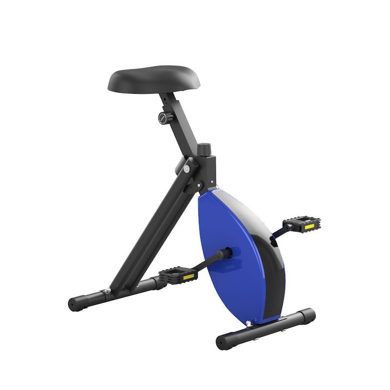 Kontorcykel Ylva, SMALL, blå / sort. Denne unikke og patenterede skrivebordscykel kombineres med et hæve-sænke-bord og giver en sund aktivering af kroppen i forbindelse med arbejdet.