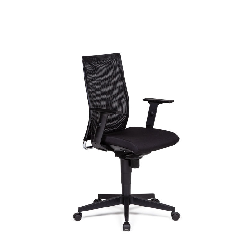 Kontorstol Hamilton sort uden nakkestøtte. Kontorstole Hamilton med netryg / mesh. Stilfulde 8 timers kontorstole til en utrolig lav pris. Man kan vælge mellem sæde med enten blå, beige eller sort betræk. Armlæn som tilbehør. Skrivebordsstolene leveres med hjul til hårde gulve. Synkronmekanisme.
