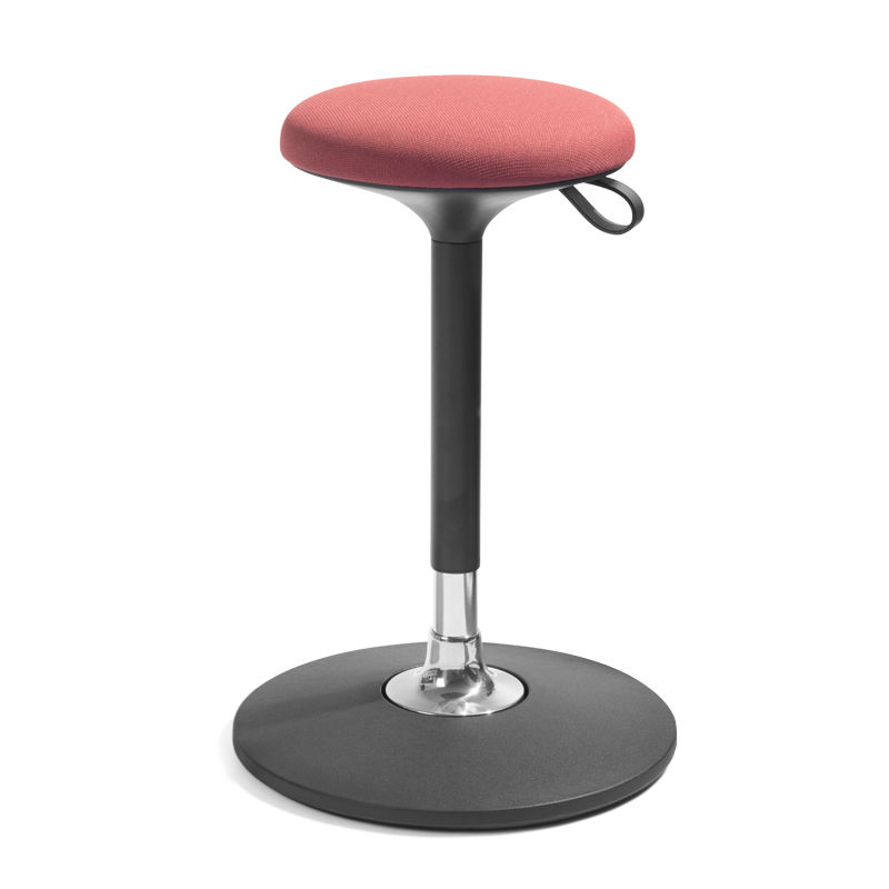 Balancestol Sander, rød. Balancestolen Sander, er designet til både at aflaste og træne kroppen på én og samme gang. Sædet kan dreje, hvilket giver dig nem adgang til tingene i nærheden af hvor du sidder, og højdejusteringen klares enkelt vha. et håndtag i ægte læder. Da foden på Sander er flad, kan du sidde sikkert og nyde komforten og de sunde bevægelser. Stolens lave egenvægt betyder at den er super nem at flytte rundt på. Betræk: CURA, er ÖKO-TEX certificeret og har EU Ecolabel. CURA fra Gabriel er et moderne og slidstærkt stof, fremstillet af 98% genanvendt polyester (PET) med en slidstyrke på 100 000 Martindale.
