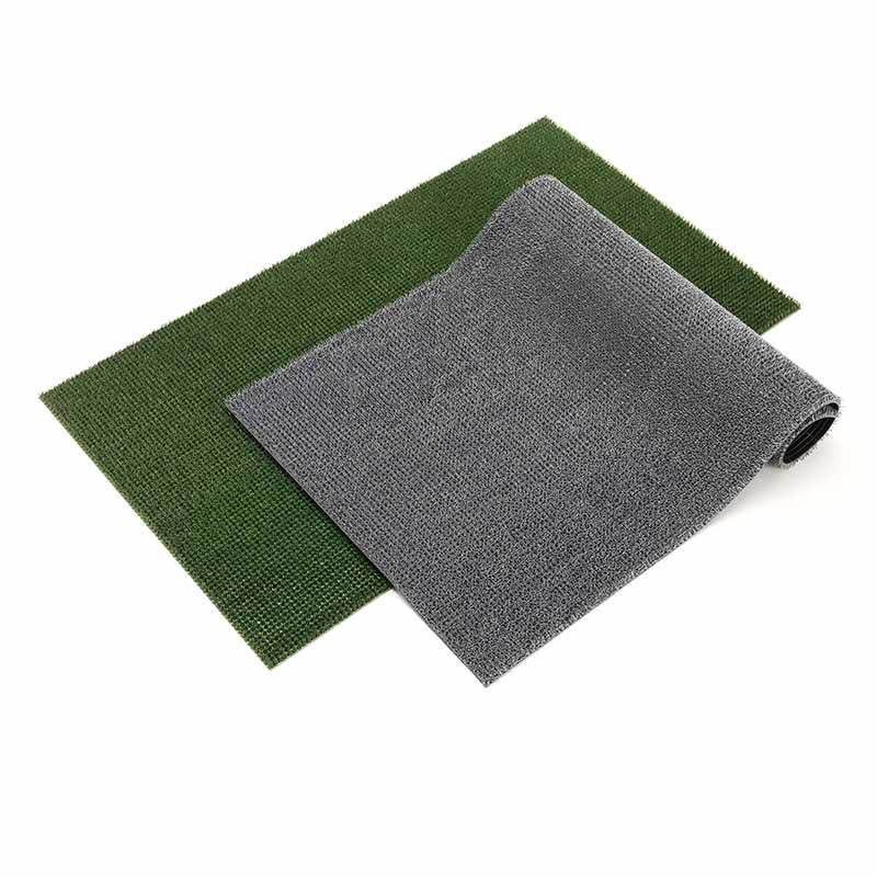 Smudsmåtte Turf, "Græsplænen", en skrabemåtte af kraftige polyethylenbørster. Med gummieret, glasfiberforstærket bagside. Tåler ikke maskinvask. Fast meterpris – kontakt venligst vores salgsafdeling for bestilling i specialmål: 49-18 07 07