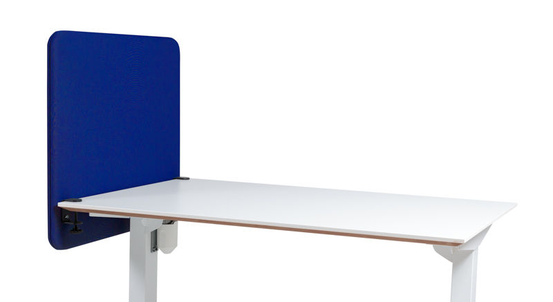 Bordskærm Softline, nedhængende, BxH 600x650 mm, mørkeblå. I arbejdsmiljøer med høj lydbelastning anbefaler vi nedhængende bordskærm som med sin større overflade giver størst mulig lydabsorbering. Afskærmningshøjde over bordpladen på ca. 500 mm. Skærmen har massiv træramme med akustikplade. Tykkelse 30 mm. Monteres uden værktøj. Testet og klasse-A godkendt efter SP norm SS-20354/NT ACOU 085. Stoffet er 100% polyester med 2mm lydabsorberende skumlaminering. Lysægthed >5 iflg. ISO 105-B02. Brandklasse: BS 476 Part 7, class 2. Bordskærm Softline er et enkelt og fleksibelt skærmsystem. Den er en god lydabsorbent og passer i alle tænkelige miljøer. Skærmen findes i to varianter, faste på bord eller nedhængende.