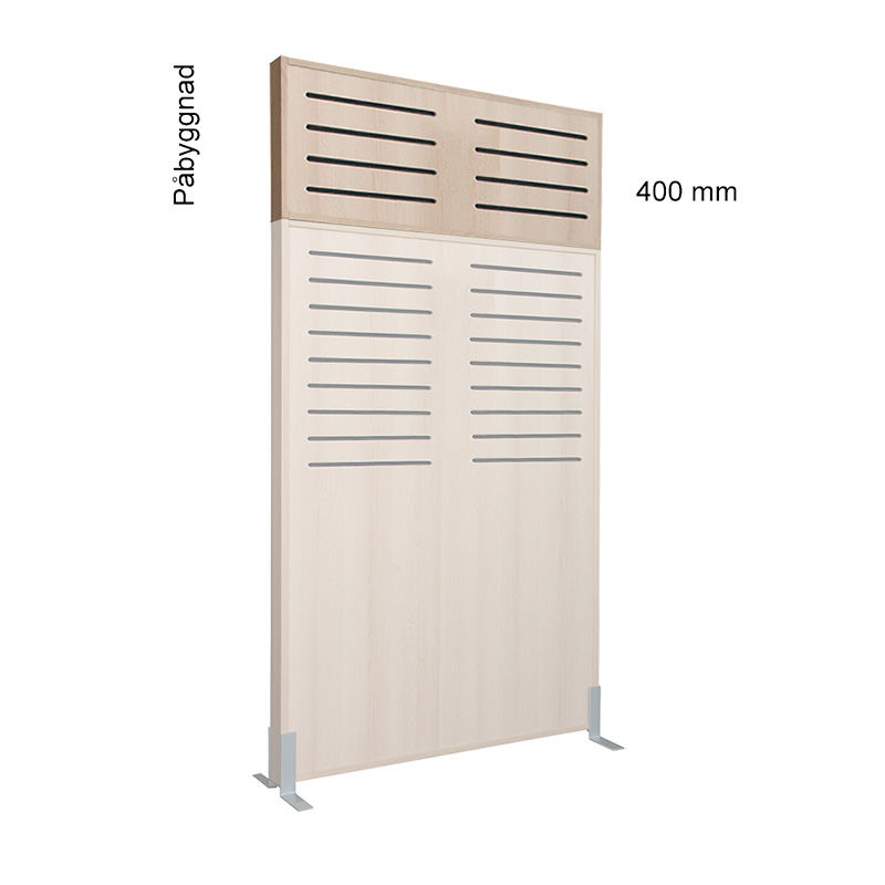 Skærmvæg Silence overbygning lige, 1200x400 mm, træ/træ, hvid. Det naturlige valg, når det gælder design, kvalitet, lydabsorbering og fleksibilitet!