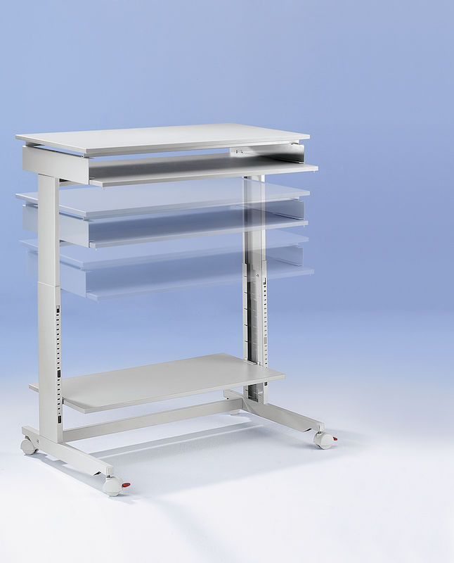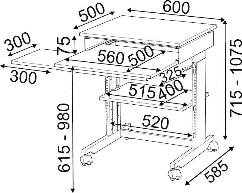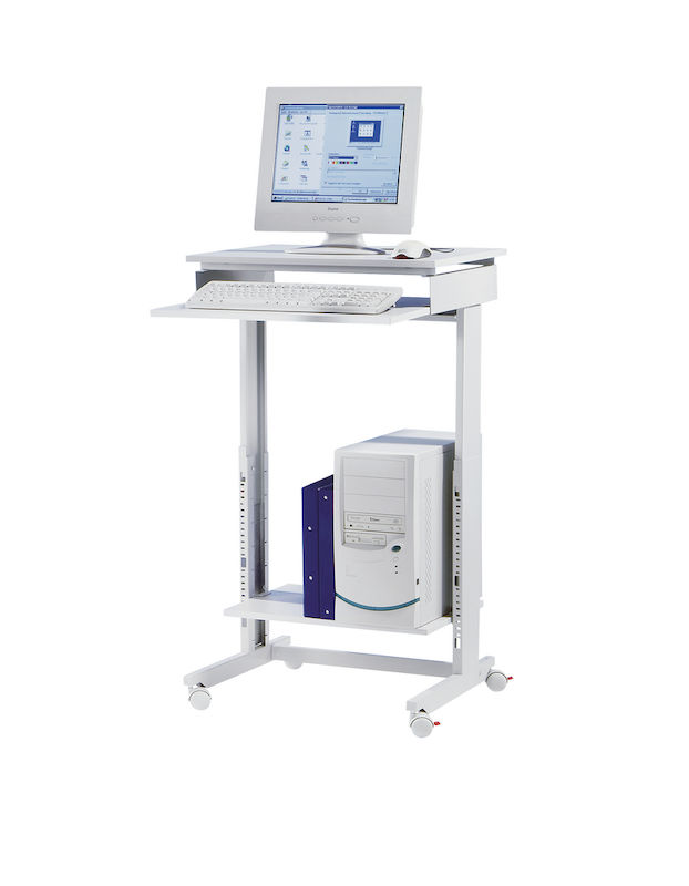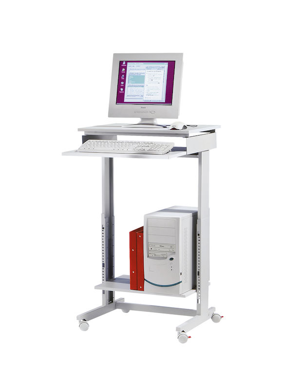 Computerbord Bill, bredde x dybde 600 x 500 mm, højdeindstilling fra 715 til 1075 mm. Stel af stabiler stålprofiler. Bordplade af refleksfri melaminbelagt spånplade.
