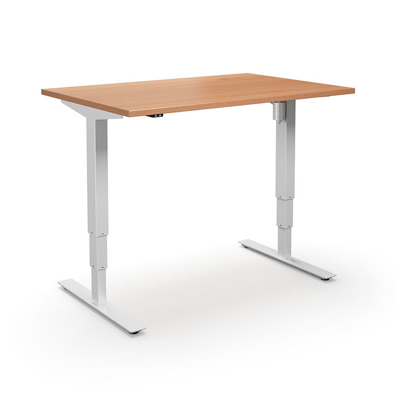 Hæve sænkebord Atlanta, LxB 1400x800 mm, bøg/hvid. Hæve sænkebordet Atlanta er et solidt højdejusterbart skrivebord i et moderne, enkelt og stilfuldt design til en fornuftig pris. Et sikkert valg for den der vil have et højdejusterbart bord, der skal holde længe. Skrivebordet Atlanta er fremstillet af reelle materialer med fokus på kvalitet, ergonomi og høj slidstyrke. Farven er konstant, og bleges ikke med tiden. Bordet er solidt konstrueret og tåler en fordelt belastning på helt op til 150 kg.