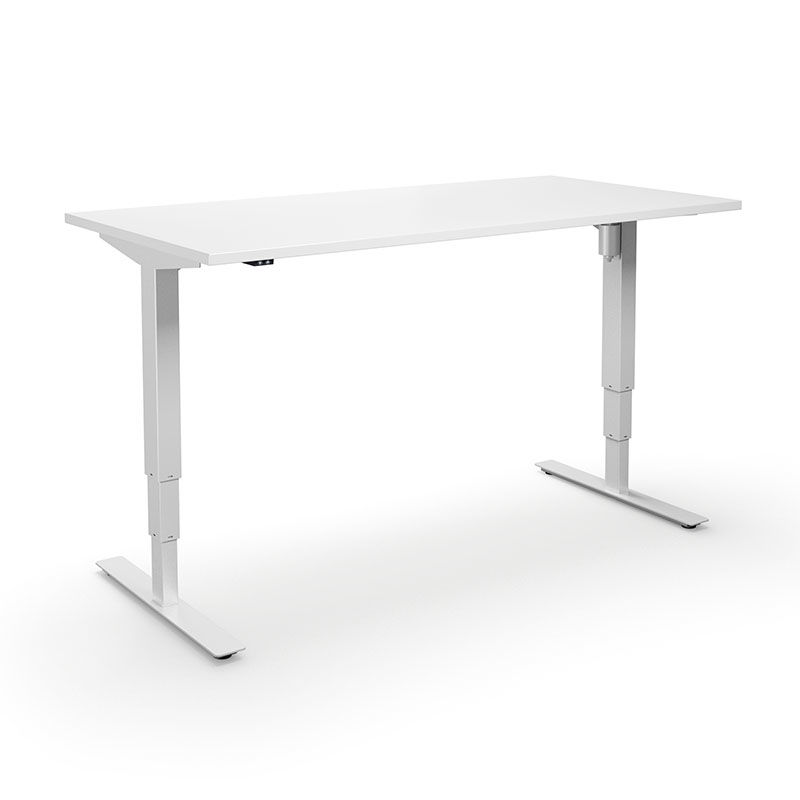 Hæve sænkebord Atlanta, LxB 1800x800 mm, hvid/hvid. Hæve sænkebordet Atlanta er et solidt højdejusterbart skrivebord i et moderne, enkelt og stilfuldt design til en fornuftig pris. Et sikkert valg for den der vil have et højdejusterbart bord, der skal holde længe. Skrivebordet Atlanta er fremstillet af reelle materialer med fokus på kvalitet, ergonomi og høj slidstyrke. Farven er konstant, og bleges ikke med tiden. Bordet er solidt konstrueret og tåler en fordelt belastning på helt op til 150 kg.