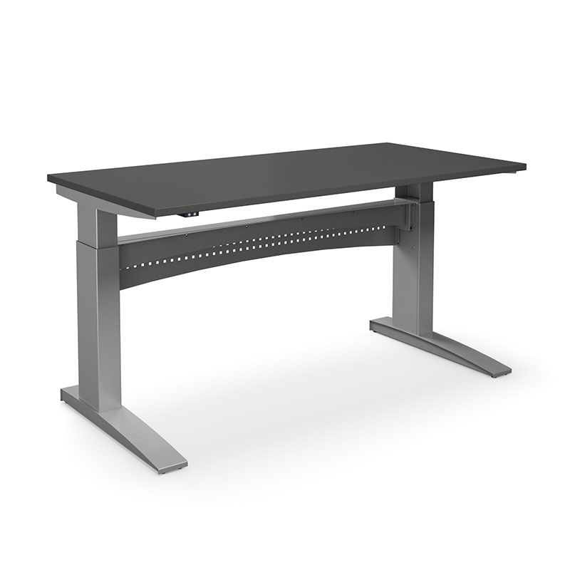 Hæve sænkebord Denver, LxB 1600x800 mm, mørkegrå / sølv. Hæve sænkebordet Denver er et meget solidt højdejusterbart skrivebord i et moderne og stilfuldt design. Et sikkert valg for den der vil have et højdejusterbart bord, der skal holde længe.
