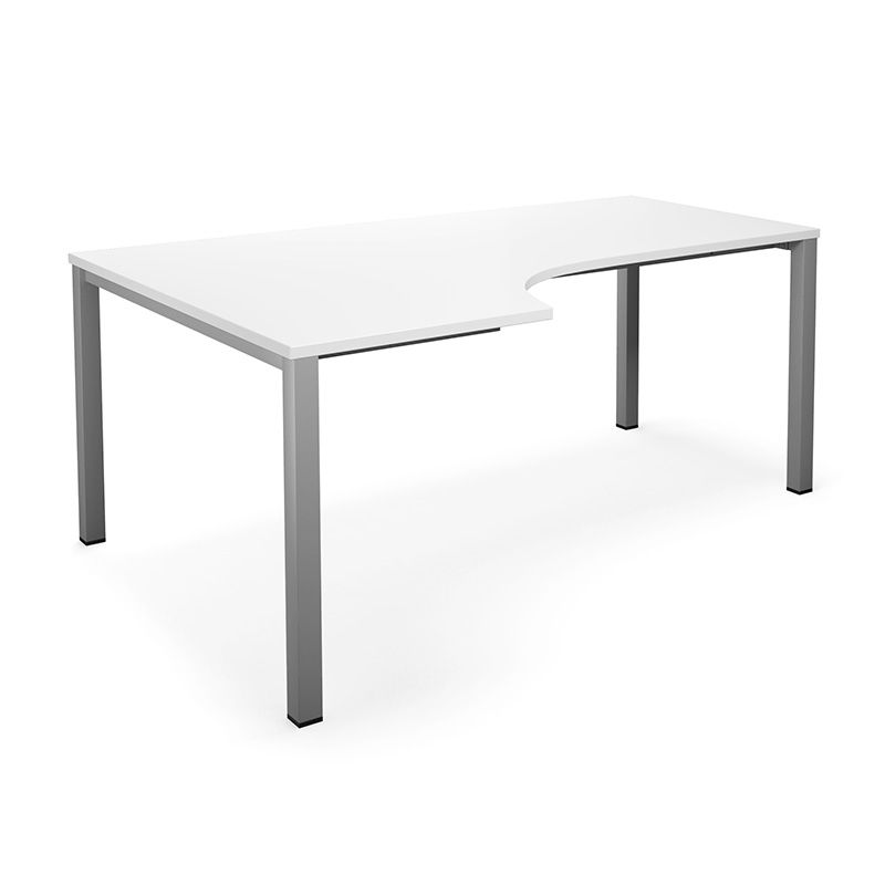 Hjørneskrivebord Duo-U, LxB 1800x1200/800 mm venstre, hvid/sølv. Laminatbordplade og firkantede ben i højden 740 mm inkl. bordpladen. Skrivebordet kan suppleres med en hængende skuffesektion.