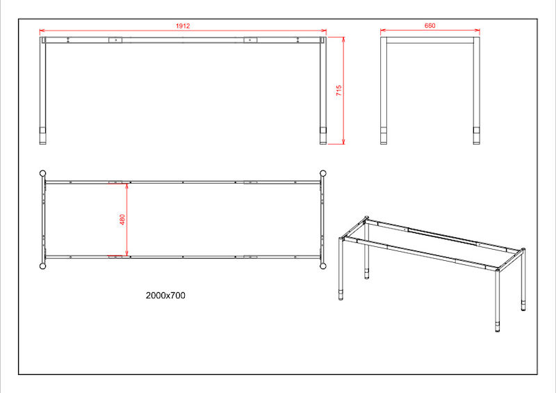 Bordpladen er lavet af 25 mm tyk MDF belagt med laminat, lige eller runde hjørner og en 10 mm kantliste af ABS-plast. Højde 740 mm inklusive bordplade. Bemærk! Den hængende skuffesektion (tilbehør) passer ikke til borde med en længde på 1200 mm. Alle andre længder passer.