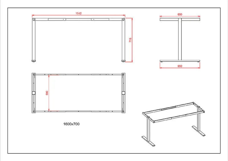 Bordpladen er lavet af 25 mm tyk MDF belagt med laminat, lige eller runde hjørner og en 10 mm kantliste af ABS-plast. Højde 740 mm inklusive bordplade. Bemærk! Den hængende skuffesektion (tilbehør) passer ikke til borde med en længde på 1200 mm. Alle andre længder passer.