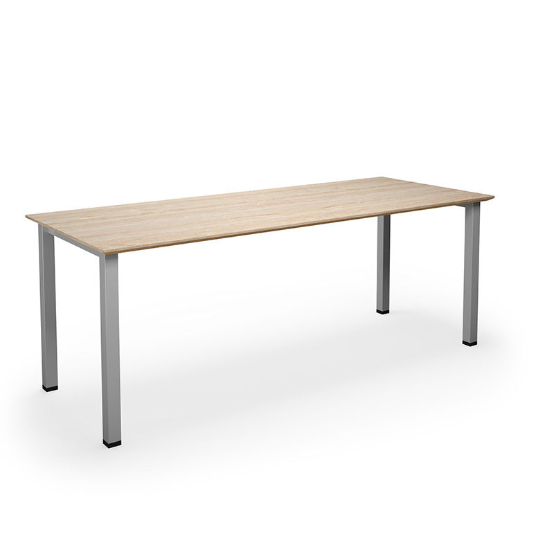 Bord DUO-U Trend, lige hjørner, LxB 2000x800 mm, eg/sølv. Moderne bord til kontor, konference eller frokostrum med robust stativ og laminatplade, der er nem at rengøre.