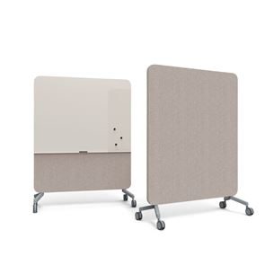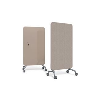 Whiteboard glas Lintex Mood fabric mobile, beige/brun, BxH1500x1960 mm. Whiteboard glas Lintex Mood fabric mobile. Mobil skrivetavle i glas i kombination med en stofbeklædt lydabsorberende opslagstavle. Mood Textile er en alsidig og fleksibel skærm som kombinerer materiale og funktion på en naturlig måde. Der fås en mindre model som er helt dækket med glas på fronten og en større kombineret model med front af glas i kombination med en lydabsorberende opslagstavle, Begge er med en lydabsorberende påfyldning og stofbetrukket ryg. Vælg mellem 9 udvalgte farvekombinationer. Leveres med fødder og hjul som standard.