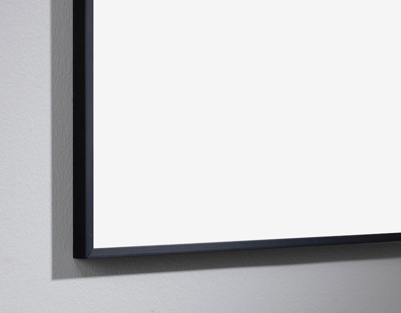 Elegant whiteboard med 90° hjørner. Nem ophængning med ophængningsliste og faste beslag på bagsiden af tavlen. Glasemaljerede skriveflader i topkvalitet og anodiserede rammer. E3-certificeret. 99% genanvendelig.