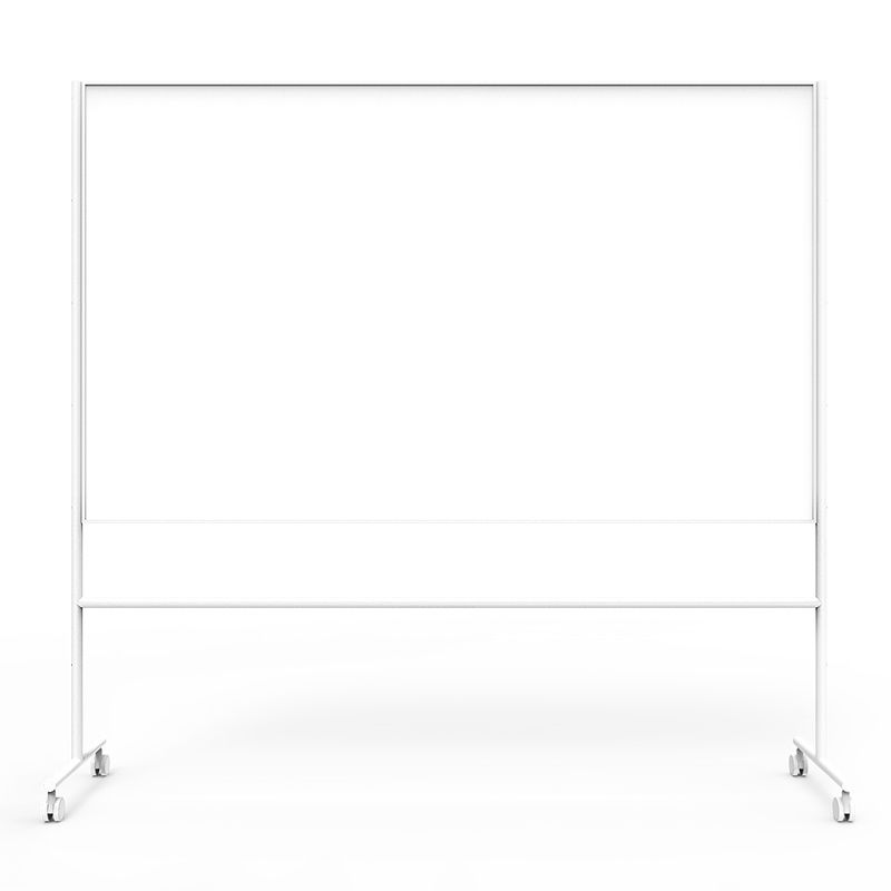 Whiteboardtavle i flere størrelser med hjulstel. Whiteboardtavlen har en magnetfunktion og er fremstillet af en glasemaljeret stålplade med en naturanodiseret aluminiumsramme, som giver et stilfuldt indtryk.