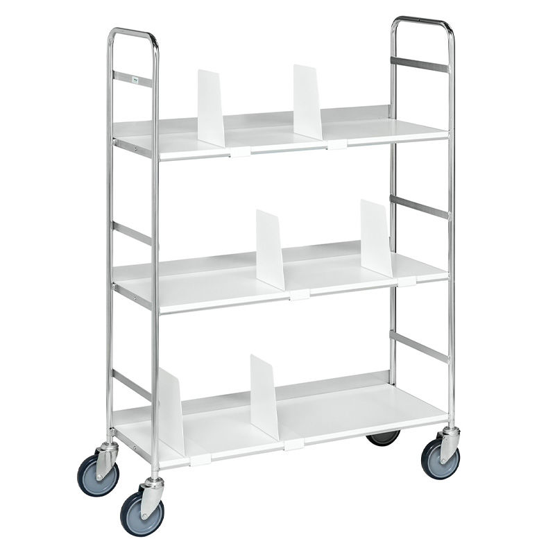 Bogvogn, LxBxH 790x290x1140 mm, hvid, 3 hylder. Levereras med 4 stk drejehjul, 100 mm. Maxbelastning 25 kg/hylde.
