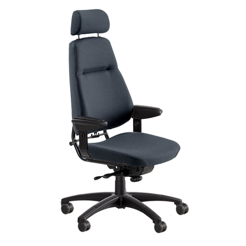 Kontorstol Sverigestolen inkl. armlæn og nakkestøtte, 814XL, sort. Til dig, som er lang eller har stor kropsbygning. Som Klassikeren, men med højere ryghynde og større sæde. Sædehynden kan skubbes 50 mm frem/tilbage.