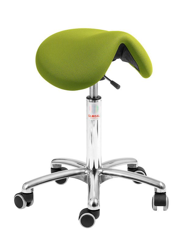 Sadelstol Dalton, grønt stof, flexmekanisme, uden ryglæn. Sadelstol Dalton, stof eller kunstlæder, med og uden ryglæn. Flere indstillingsmuligheder afhængig af model. Dalton saddelstol er formet som en "klassisk" cowboy saddel, polstret med skum og beklædt med kunstlæder alternativt stof. Den giver god komfort og ergonomisk arbejdsstilling under arbejdet, især god til dig, der gerne vil træne din ryg.