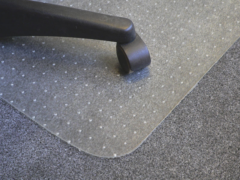 Stoleunderlag Tagg, B 1200 x L 1500 mm, til tæpper. Underlag til kontorstol til gulvtæpper med pigge til skridsikring. Køreunderlaget er fremstillet af ufarvet, transparent vinyl. Tykkelse 2,8 mm, pigdybde 4 mm.