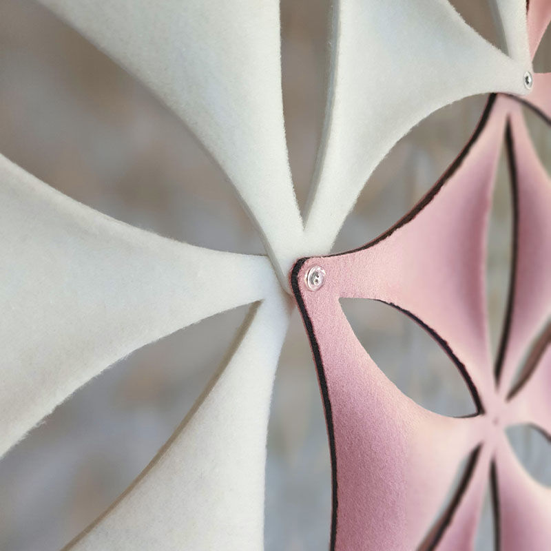 Lydabsorbent Airflake Line er lavet af støbt filt med stof for at absorbere lyd og forhindre ekko, hvilket skaber bedre akustik. De sekskantede moduler er designet til at blive kombineret som "åbne" skærme, der danner eller skaber nye rum i rummet, mens lyset kan passere uhindret igennem dem. Sælges i 3 stk eller 10 stk pakker. Til en 2 m ophængningsskinne har du brug for 30 stk Airflake og til en 1,5 m 18 stk Airflake. Mål på Airflake: B345 x H400 mm.