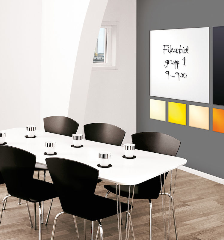Glastavle Lintex Mood BxH 750x750 mm, opalhvid. Skrivetavler med inspirerende farver, der sætter et præg på mødelokalet