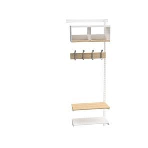 Model D: Vinklet skohylde og garderobehylde i perforeret stål, bænk i birk.