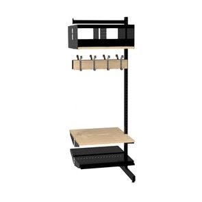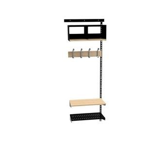 Garderobestativ Savalen enkelsidet, bredde 900 mm, sort, model C, tilbygningssektion. Praktisk og fleksibel garderobestativ med forskellige muligheder. Findes både som gulvstativ og vægstativ. Byg din egen løsning med grund- och tilbygningssektioner. Kan indstilles for hver 25 mm. Gulvstativet har indstillelige fødder. Model A: Skohylde med drypbakke, bænk, knagerække og hattehylde i tråddesign.