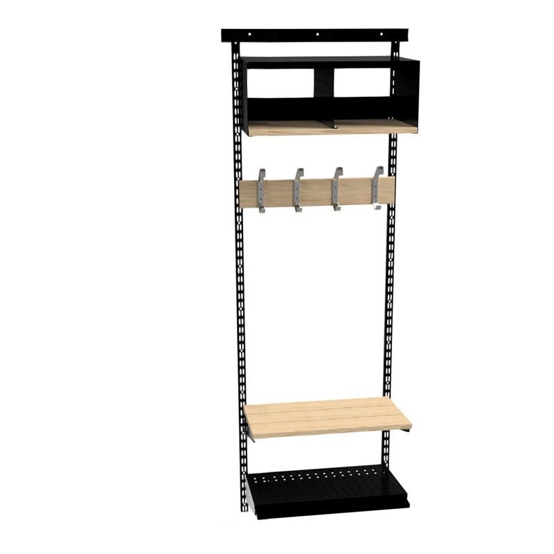 Garderobestativ Savalen væghængt, bredde 600 mm, sort, model C, grundsektion. Praktisk og fleksibel garderobestativ med forskellige muligheder. Findes både som gulvstativ og vægstativ. Byg din egen løsning med grund- och tilbygningssektioner. Kan indstilles for hver 25 mm. Gulvstativet har indstillelige fødder. Model A: Skohylde med drypbakke, bænk, knagerække og hattehylde i tråddesign.