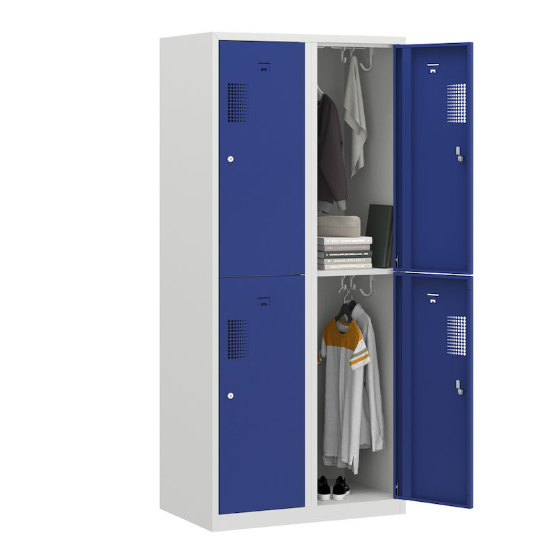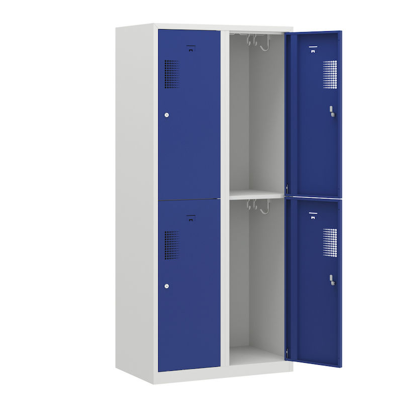 Omklædningsskab 2 delt Amsterdam, 2 sektioner, bredde 800 mm, 4 låger, lysegrå / ensianblå.