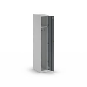 Omklædningsskab Alvina, 1 sektion, lysegrå / basaltgrå, bredde 300 mm, til hængelås. Dette omklædningsskab i serien Alvina er et førsteklasses valg til dine opbevaringsbehov med masser af værdi for pengene og en perfekt kombination af funktionalitet, stabilitet og moderne design.