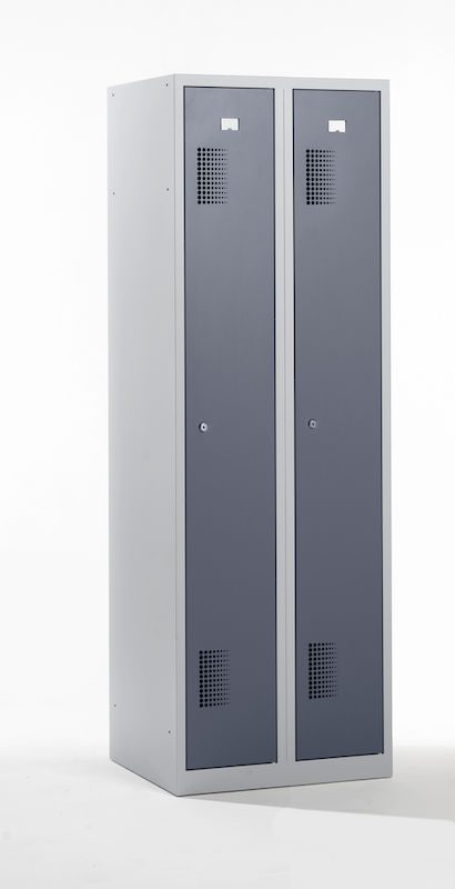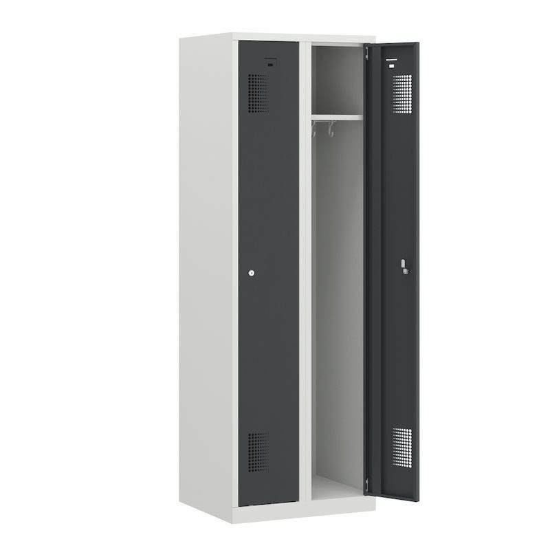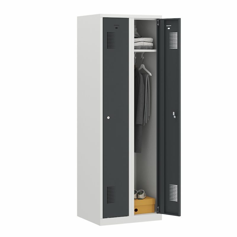 Omklædningsskab Amsterdam, 2 sektioner, lysegrå / basaltgrå, bredde 600 mm, cylinderlås. Vores robuste garderobeskab med lysegråt korpus er ideelt til at holde orden og skabe sikkerhed.