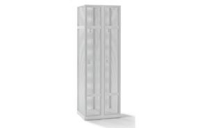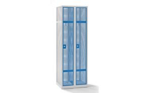 Omklædningsskab Klynne. Et omklædningsskab som man kan se ind i med den perforerede dør, hvilket reducerer behovet for beskyttelse mod tyveri. Optimal ventilation til arbejdstøj, sportstøj og sportsudstyr. Leveres monteret med en 60 mm integreret sokkel. Skabe med hel dør leveres med hattehylde, klædestang og kroge. Skabe med halvdøre leveres med klædestang og kroge. Fås i 2 forskellige fag bredder, 300 mm og 400 mm. Kabinettet er pulverlakeret i grå farve (RAL 7035) og dørene i blå (RAL 5012), grå (RAL 7035) eller basaltgrå (RAL7012). Skabet kan låses med roterende sikkerhedslås til hængelåse eller cylinderlås med 2 nøgler. Hovednøgle kan bestilles som tilbehør.