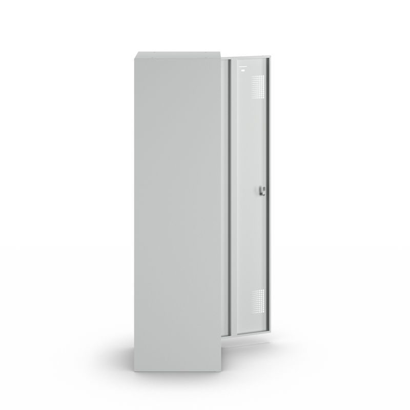 Vælg alt efter pladsforhold og behov den ønskede bredde, lågefarve og låsetype – fx med en cylinderlås eller en anordning til en hængelås (bøjletykkelse: 6 – 8 mm).